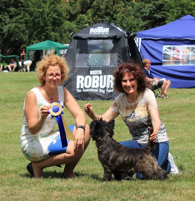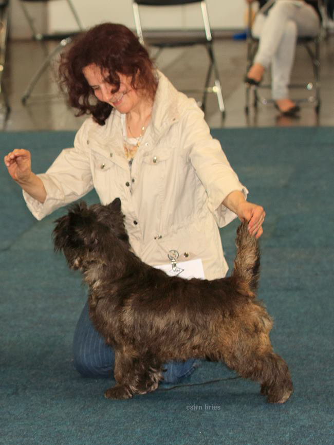 Dogshow in Gorzow/Pl am 03.07. Richter: Agatha Korpetta "Cairn Bries Cara Red Surprise/Erna Vorzüglich Platz 1, CWC, Beste Hündin, Beste der Rasse BOB "Cairn Bries Cara Magic Affair/Maggy" Vorzüglich Platz 1, CWC Bei hochsommerlichen Temperaturen machten wir uns auf nach Gorzow. Im Ausstellungsgepäck hatten wir unsere Maggy und Klein Erna. Zum Glück wurden unsere Cairn`s ziemlich früh von einer recht freundlichen Richterin gerichtet. Unsere zwei Mädels haben sich toll präsentiert und unsere "Klein Erna" erlief sich zum Schluß den Rassebesten BOB! Braves Kleines Mädchen:-) |