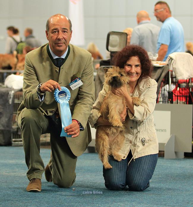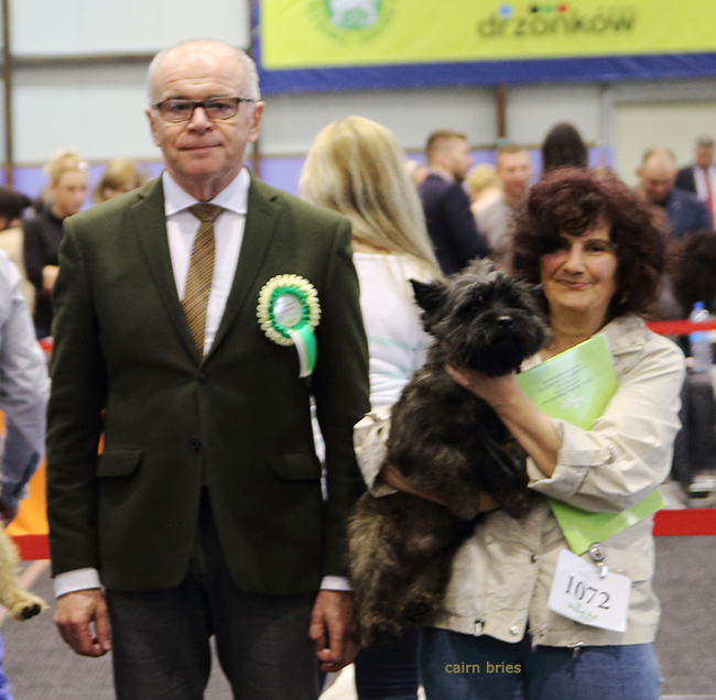 Die diesjährige Ausstellungssaison haben wir mit der CACIB Ausstellungin Zielona Gora begonnen. Wir haben tatsächlich den schönsten Cairn Terrier, so bescheinigte es uns der amtierende Zuchtrichter, unser Niles wurde bester Cairn Terrier! Unsere Junghündin "Cairn Bries Cara Lady Million/Millie" belegte in der Jugendklasse V4, für Millie war es mehr Welpenspielstunde :-). Der kleinen Hündin hat es Spaß gemacht, für mich das aller Wichtigste! Unser Neuimport "Kiokas I Hear You Knocking/Niles" wurde mit Vorzüglich1, CWC, CACIB bewertet und zu guter Letzt auch noch Rassebester / BOB! Vielen Dank an den Rassespezialisten P. Krol für die tolle Bewertung! ![]() |
