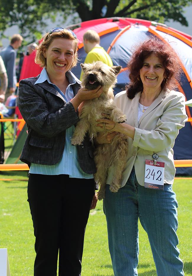 CACIB Schau Neumünster am 05.Juni, Richter: Svante Frisk/Schweden "Cairn Bries Cara Red Surprise/Erna" Vorzüglich 1.Platz,CAC,CACIB, Beste Hündin "Kiokas I Hear You Knocking/Niles" Vorzüglich 2.Platz, Reserve CAC Neumünster ist die Hochburg für dänische Cairn Terrier Aussteller, um so größer war unsere Freude als Erna auf den 1. Platz gestellt wurde, als jüngste Cairn Terrierhündin und unter großer Konkurrenz!! Unsere Erna ist gerade 17 Monate alt und aus der Zwischenklasse heraus ein CACIB zu erhalten ist schon grandios! Für uns war es ein Highlight! Ich sage einmal: "Deutschen Boden erfolgreich zurück erobert :-) :-) :-) ! Wir waren die einzigen deutschen Aussteller :-)! |