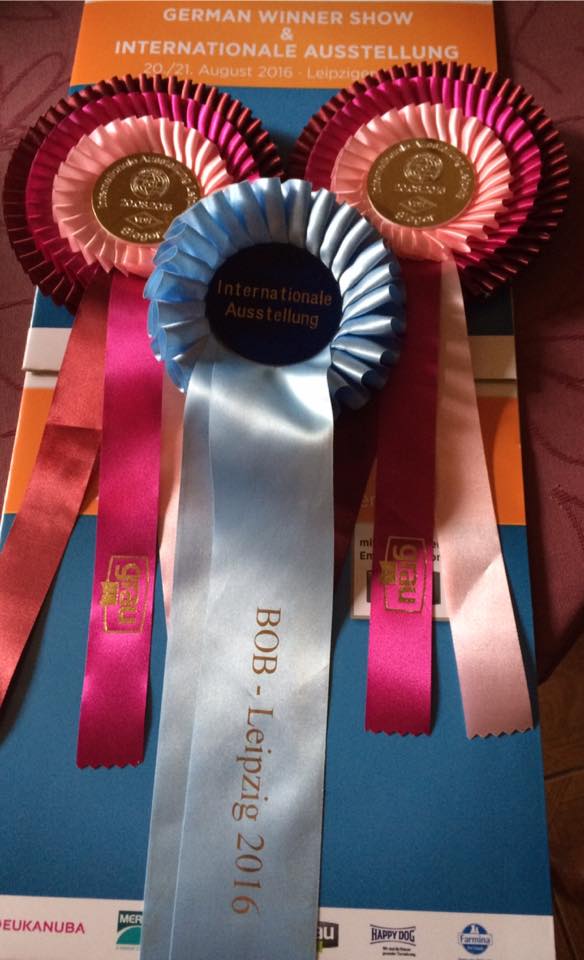 Austellung in Gorzow am 18.09. Unser "Kiokas I Hear You Knocking" erhält sein letztes CWC und darf sich nun "Champion Polen" nennen Unsere kleine "Cara Lady Million" belegte den ersten Platz und wurde sogar als "beste Hündin" ausgezeichnet! |